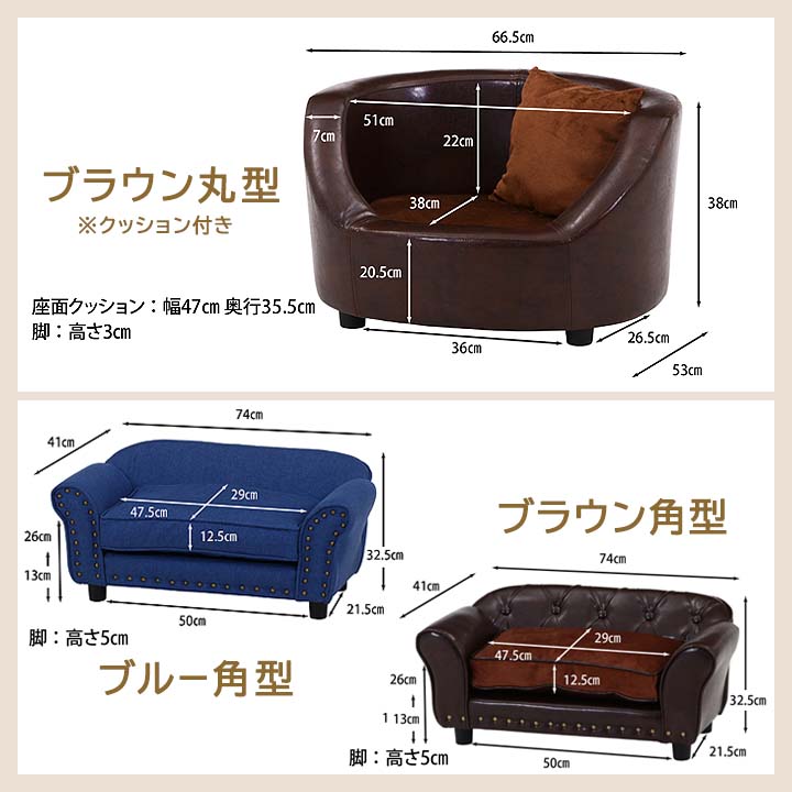 猫 犬 ペットソファ (fbc) ブラウン丸型/ブルー角型/ブラウン角型 休憩 かわいい おしゃれ