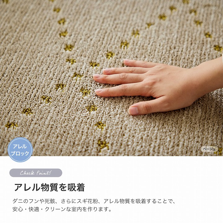 ラグ ポント(sn)Lサイズ(約3畳)185×240cm 防ダニ 長方形 床暖房 すべり止め アレルゲンブロック 洗濯