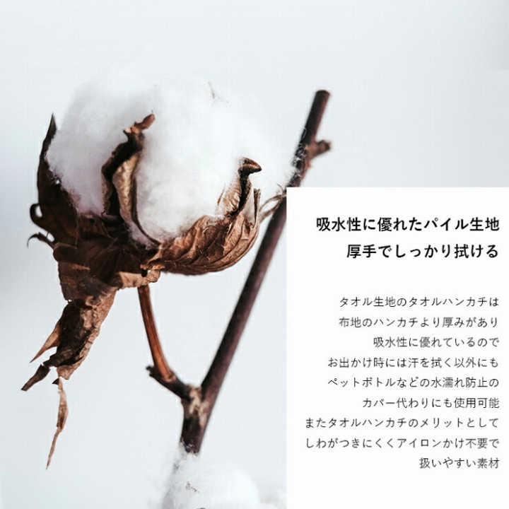 ふんわりしたパイルでアイロン不要の使いやすい厚手のタオルハンカチ。