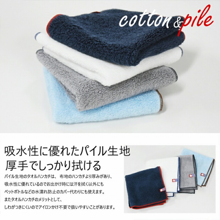ふんわりしたパイルでアイロン不要の使いやすい厚手のタオルハンカチ。