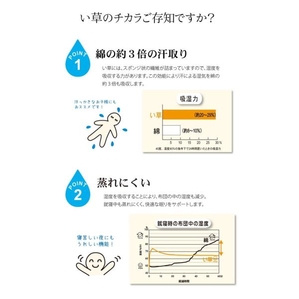 2.湿度の調整作用があり、蒸れにくく快適な就寝を促します。