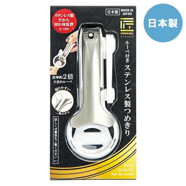 爪切り ルーペ付き ステンレス製 G-1304 つめきり 匠の技 日本製 ネイルケア グリーンベル 拡大鏡