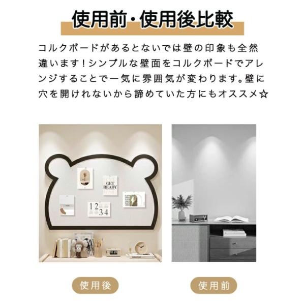 付属の押しピンで貼るだけ簡単設置! 穴を開けず、ナチュラルで壁なじみが よく見た目もおしゃれで写真やアクセサリーなど を可愛く掲示できます