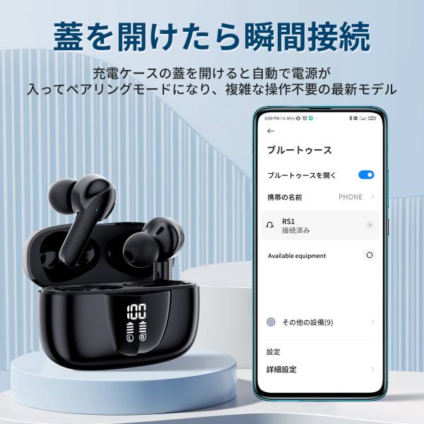 ワイヤレスイヤホン Bluetooth 5.3 通話 両耳 イヤホンマイク 自動ペア 左右分離型 残電量表示 長時間連続再生 IPX7防水 多機種対応 HiFi高音質 iPhone ipad Android siri?応 電話拒否 着信 瞬間接続 技適認証済み LEDディスプレイ 日本語説明書付 送料無料 おすすめ
