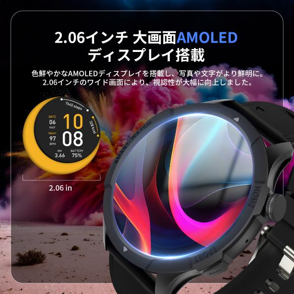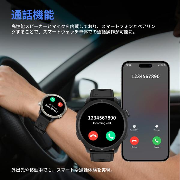 スマートウォッチ 1.47インチ画面 Bluetooth5.4 通話機能付き 運動モード 日本製センサー 男女兼用 iphone対応 Android対応 Bluetooth通話機能 活動量計 歩数計