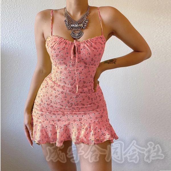 【一部即日発送 】ワンピース ノースリーブ 花柄 レディース Vネック キャミワンピース タイトワンピース ミニ丈 ヒップパック スリム お呼ばれ 披露宴 二次会