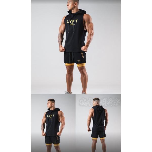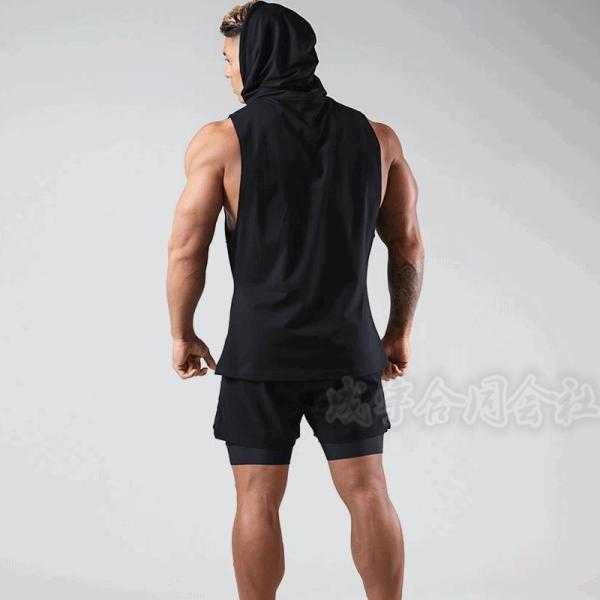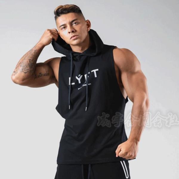 フード付き タンクトップ スウェット メンズ Tシャツ プリント ゆったり トップス トレーニング フィットネス ジムウェア 普段着 部屋着 カジュアル 吸汗速乾