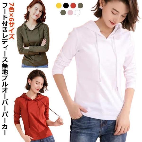 薄手 カットソー 春 パーカー フード付き 秋 tシャツ 長袖 カジュアル トップス プルオーバー プルオーバーパーカー 無地 シンプル 体型カバー