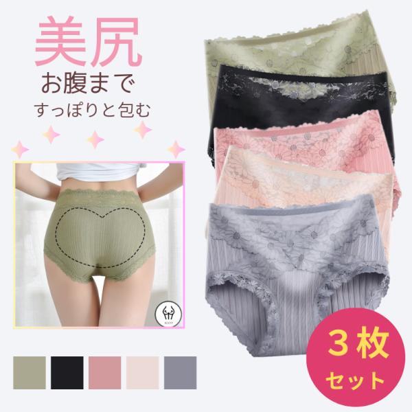 ショーツ レディース 綿 下着 3枚セット シームレス レース 綿パンツ 深履き 深め 総レース ハイウエスト 大きいサイズ お腹引き締め