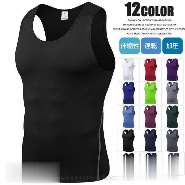 タンクトップ メンズ コンプレッションウェア スポーツ アンダーシャツ 加圧シャツ ノースリーブ バスケ ジム 伸縮性 速乾 父の日