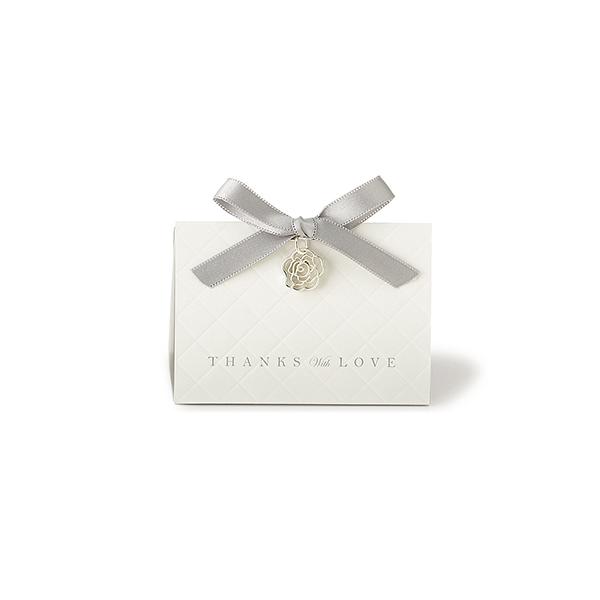 ピュアなホワイトを基調に、シックなトーンのゴールドやシルバーカラーのリボンでが大人の上品さをプラスします。