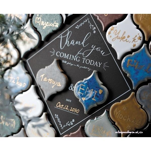 ゲストがお二人の幸せを想いながらタイルにお名前を書いて頂き、ウェルカムボードにそれぞれお好きな場所に貼って頂いて作るオリジナルボードです。