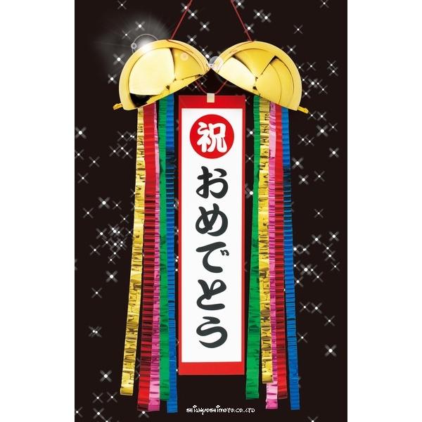「祝おめでとう」の垂れ幕とキラキラメタルテープが入っています。