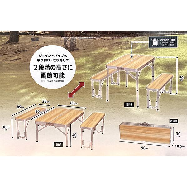 即日出荷 ParkLane パークレーン 木目調 2WAYアルミテーブルセット K-10452 アウトドアテーブル チェア 折りたたみ