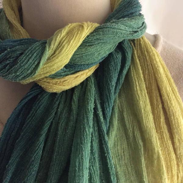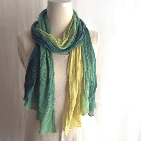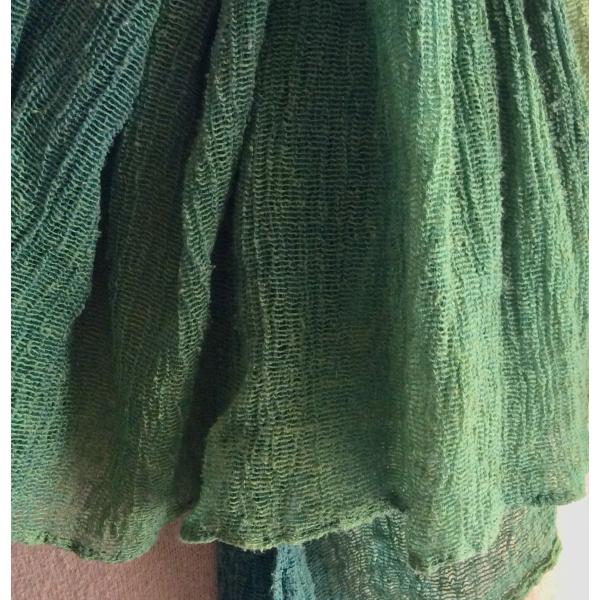 草木染シルクストール 楊柳 緑のグラデーション