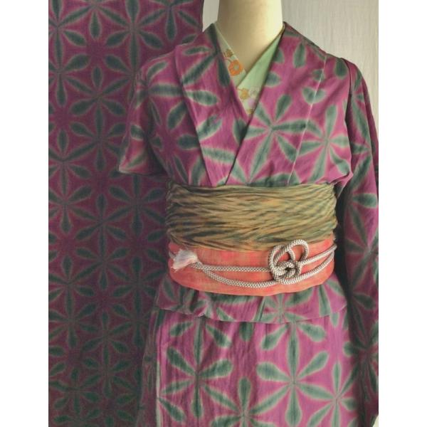 抜染技法を併用した個性的な色味の雪花絞りです。透け感のないしっかりした生地なので、浴衣で仕立てても、コーディネート次第で3シーズン着られます。