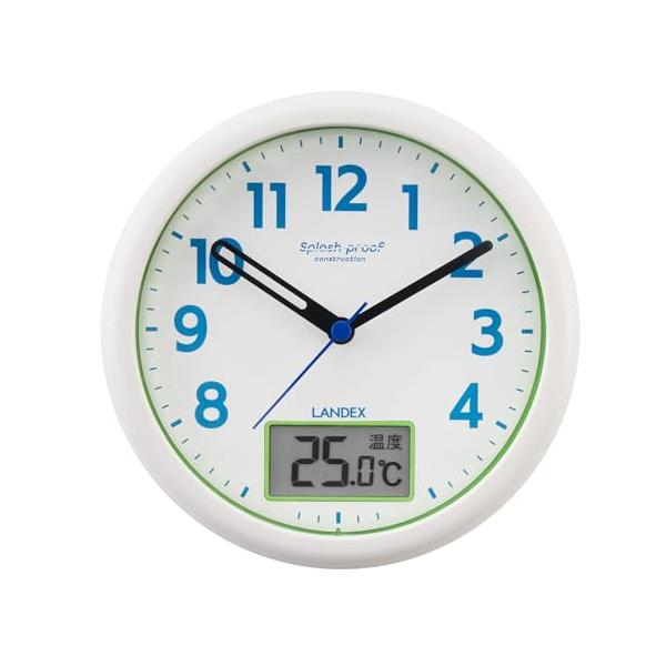 ランデックス(Landex) バスクロック 温度表示 デジアナ 防水 17cm アクアディズ 置き掛け兼用 ホワイト グリーン YT5311WH