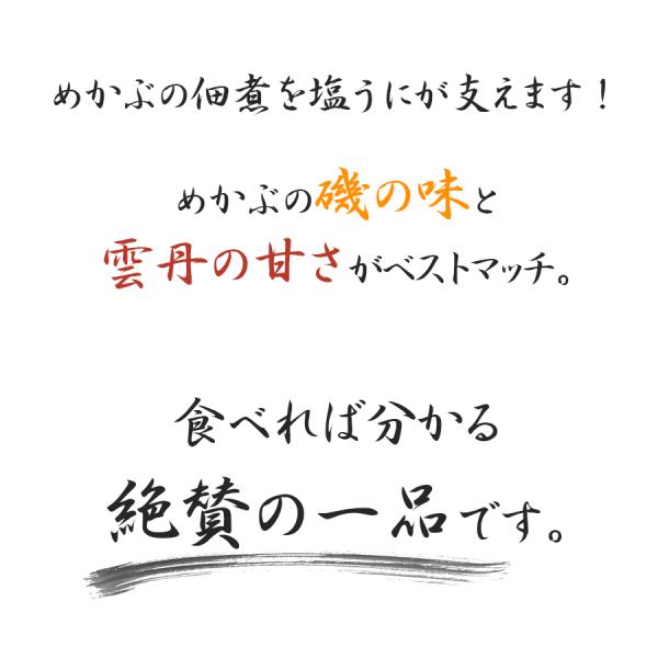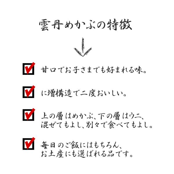 新鮮なめかぶを丹念に佃煮にし、塩ウニを加えることで旨みが増し、磯の香りを深めました。