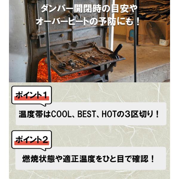 薪ストーブの燃焼状態や適正温度の善し悪しがひと目でわかるシンプルさ!