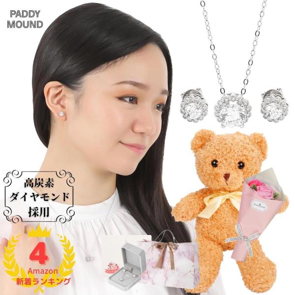 PADDY MOUND 高炭素 ダイヤモンド ネックレス ピアス レディース テディベア 誕生日 クリスマス プレゼント 女性
