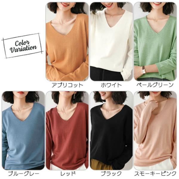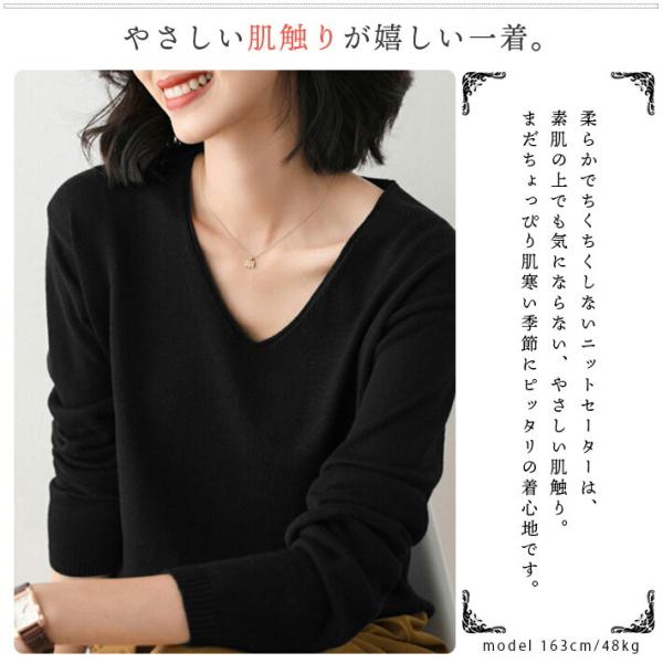 ニットセーター ニットソー トップス インナー 柔らかい カシミアタッチ 薄手 ニット Vネック 長袖 無地 母の日 誕生日 プレゼント 贈り物 ギフト レディース