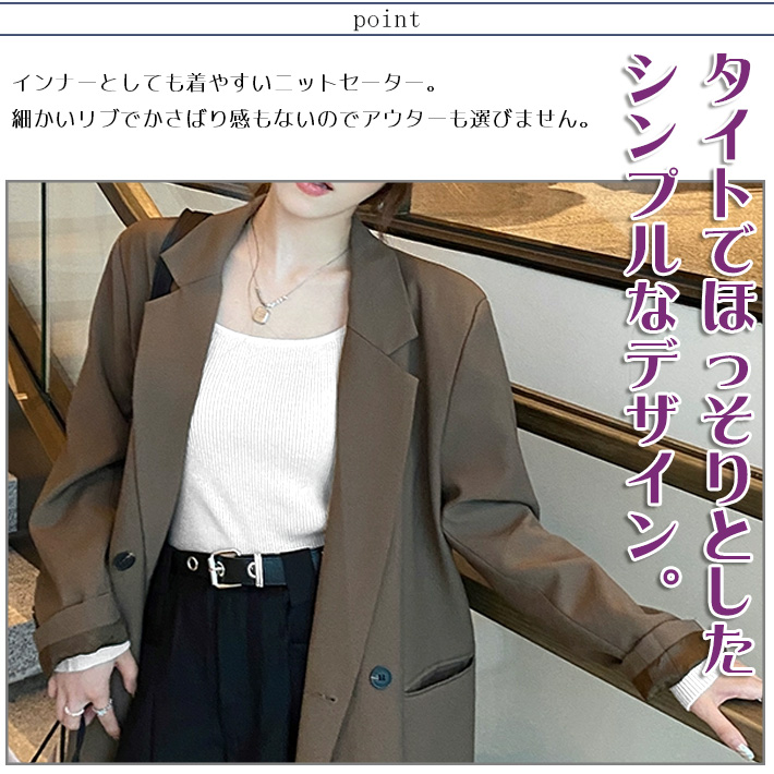 ニッ トセーター ニットソー インナー タイト トップス カシミアタッチ ショート丈 スクエアネック ストレッチ 長袖 薄手 柔らかい リブニット 無地 レディース