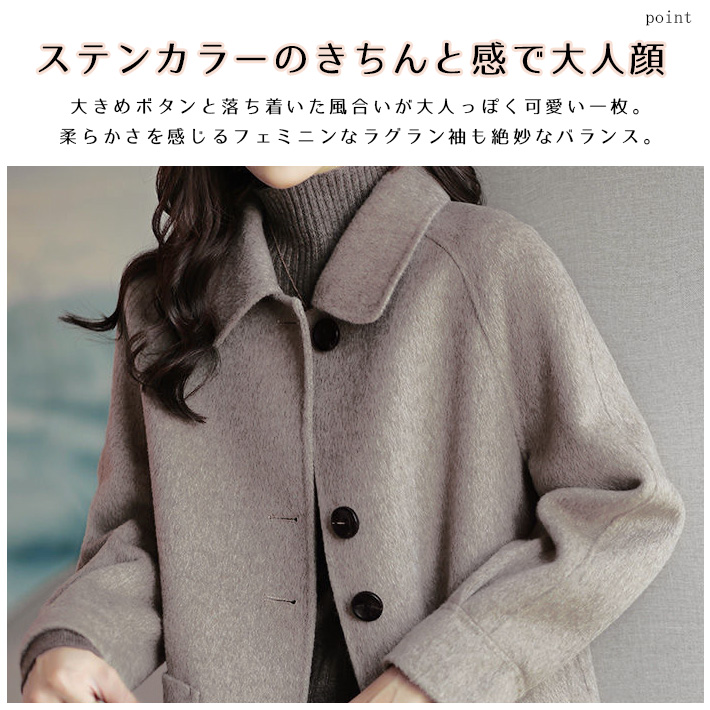 ステンカラー コート メルトン チェスター ミドル ロング ミドル丈 ゆったり Aライン ラグランスリーブ 厚手 防寒 暖かい 軽量 きれいめ 無地 秋 冬 レディース