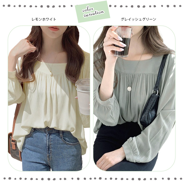 シフォン ブラウス シャツ オフィス ボリューム袖 スクエアネック ノーカラー 長袖 おしゃれ カジュアル ゆったり 薄手 母の日 プレゼント 可愛い 夏 レディース