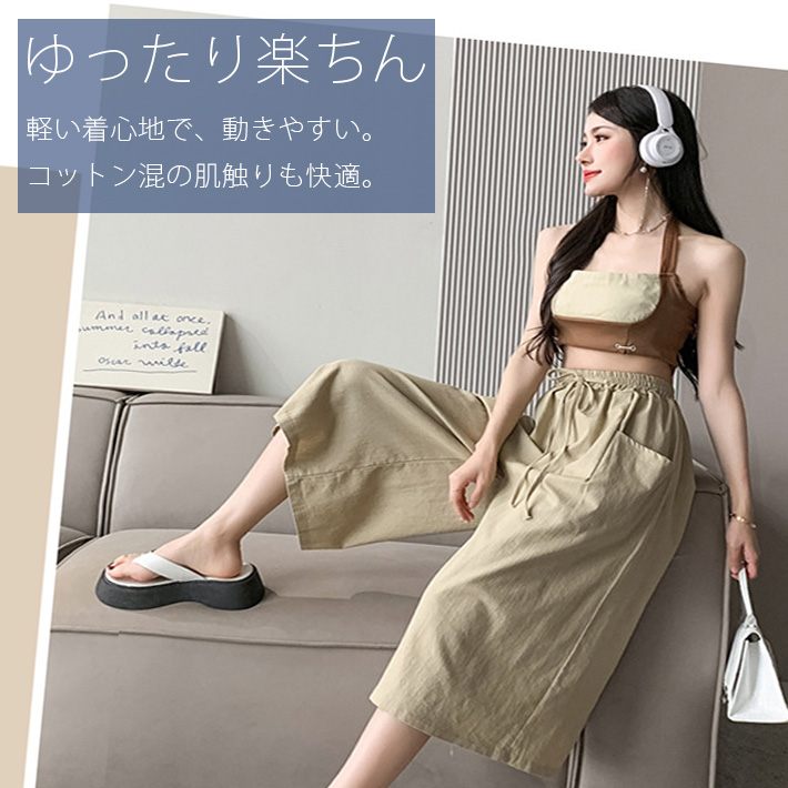 ガウチョ パンツ ワイド キュロット スカンツ スカート 7分丈 ゆったり Aライン ハイウエスト 涼しい 薄手 綿 コットン 30代 40代 50代 大人 夏用 レディース