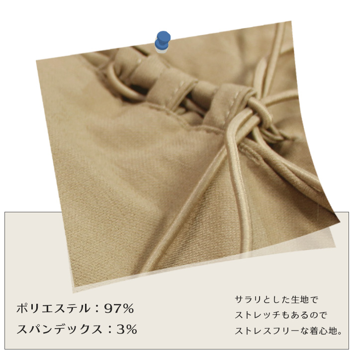 ストレッチ性のあるサラリとしたポリエステル素材で涼しく夏に快適。