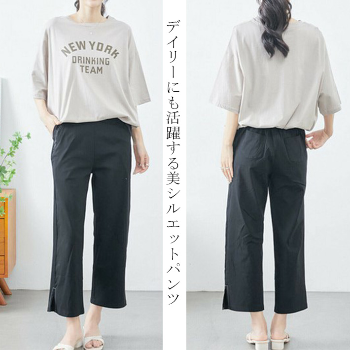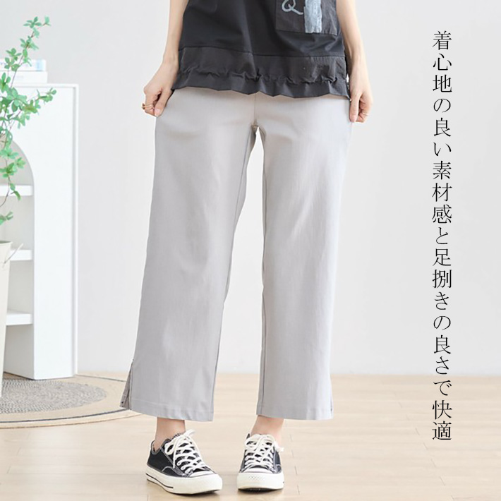 クロップドパンツ ストレッチパンツ アンクルパンツ イージーパンツ スリットパンツ