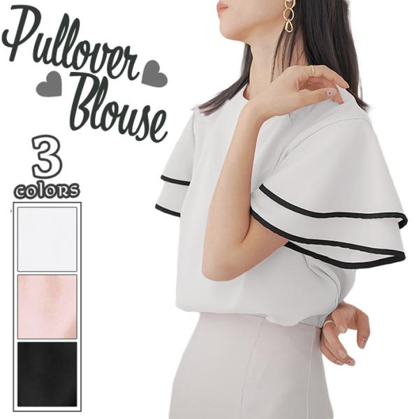 フリルブラウス レディース シフォン プルオーバー シャツ フリル袖 半袖 薄手 きれいめ 涼しい カジュアル おしゃれ ふんわり 可愛い 上品 40代 白 春 夏 夏服