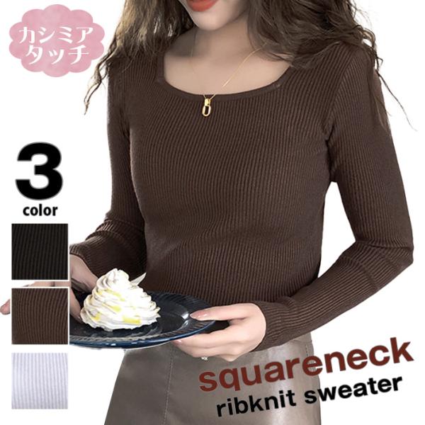 ニッ トセーター ニットソー インナー タイト トップス カシミアタッチ ショート丈 スクエアネック 伸縮 長袖 薄手 着痩せ 細見え きれいめ 春 秋 冬 レディース