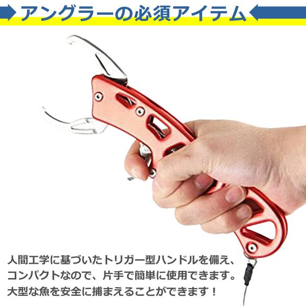 フィッシュグリップ 釣り キャッチャー 魚 フィッシュ フィッシング プライヤー トリガー 掴み ステンレス製 ロープ カラビナ付き