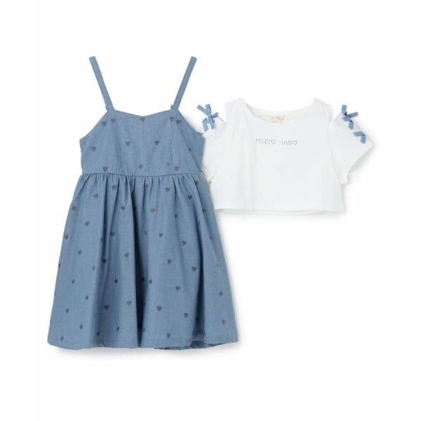 mezzo piano / メゾピアノ 【人気商品再入荷】【直営店で取り扱い無し】肩開きTシャツ&キャミワンピースセット