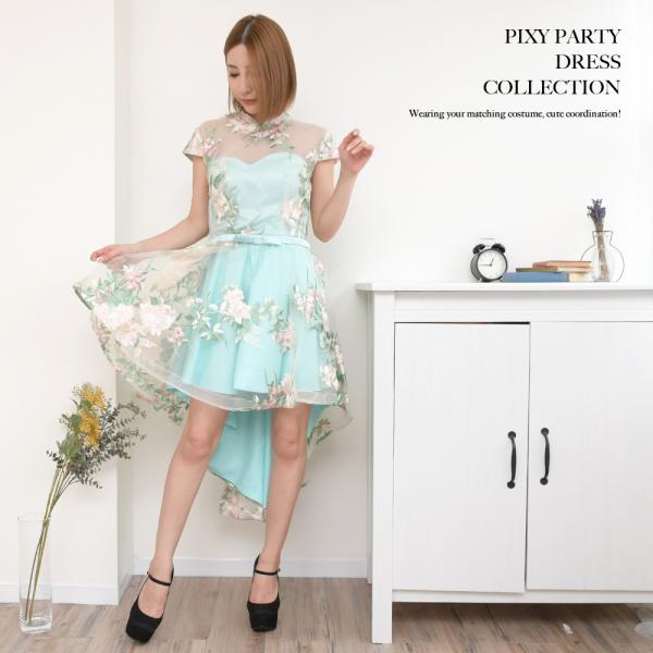 PixyParty ワンピース チャイナ風ワンピース ドレス フレアワンピース コスプレ チャイナ チャイナドレス ミニ セクシー チャイナ服 スカート パステル