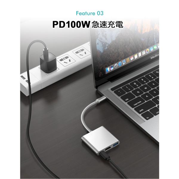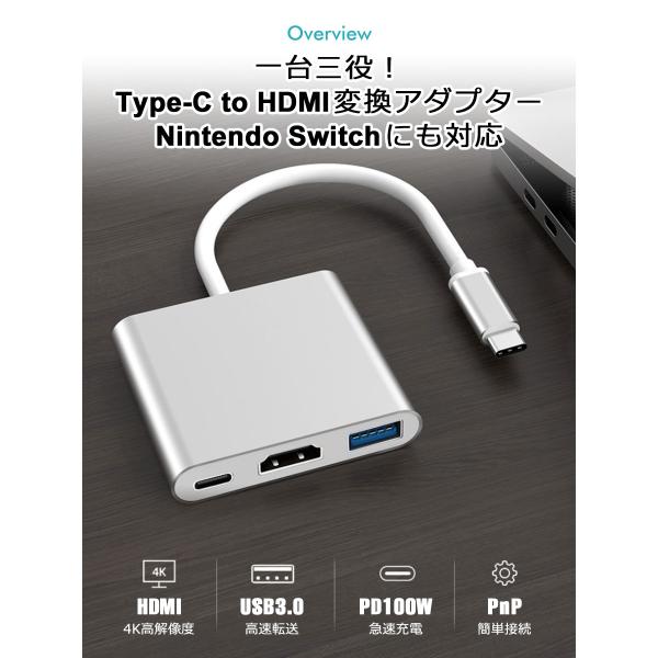 hdmi タイプc 変換 type-c to HDMI 変換アダプター 3in1 Nintendo Switch 任天堂スイッチ 4K高解像度 USB3.0 PD急速充電 マルチハブ y4