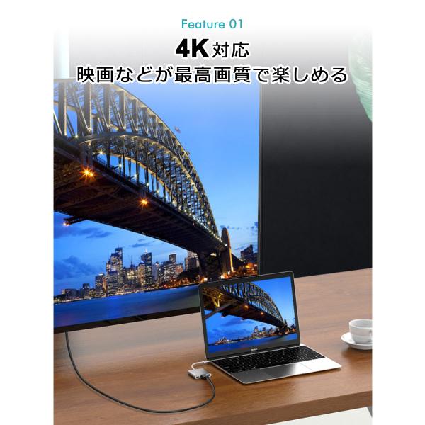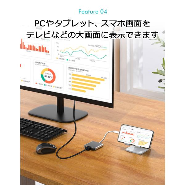 NintendoSwitchにも対応したType-CtoHDMI変換アダプター。4K対応でスマホなどの画面をテレビなどに出力して、高画質で楽しむことが出来る変換アダプターです。