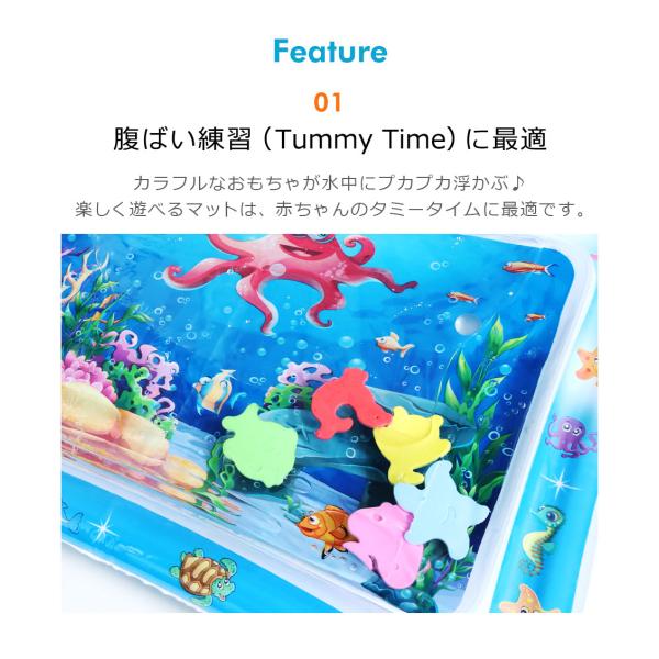 カラフルなおもちゃが水中にプカプカ浮かぶウォータープレイマット。楽しく遊べるウォータープレイマットは、赤ちゃんのタミータイムにオススメです。