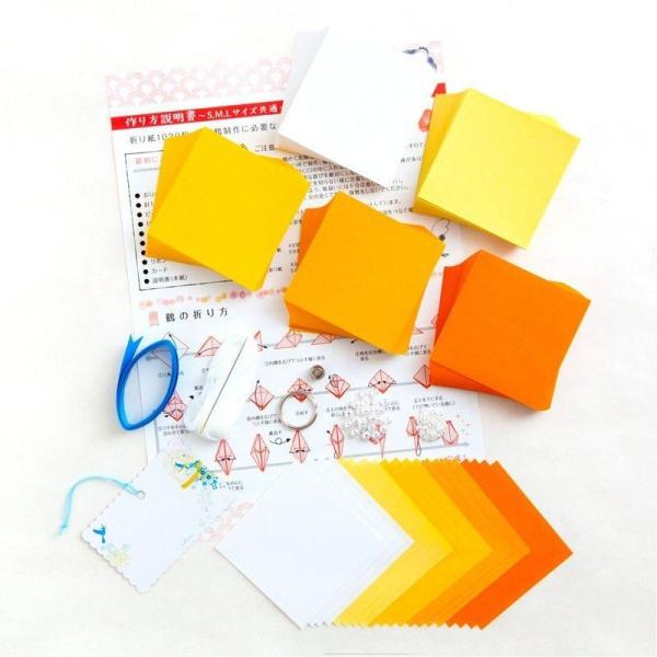 千羽鶴キットM オレンジ5色 手作りキット 千羽鶴用折り紙と材料のセット Mサイズ(7.5cm角折り紙)
