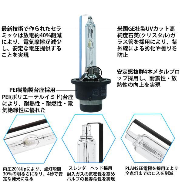 HIDバルブ HIDバーナー 改良版 D2S専用 3400ルーメン 純正交換用 耐震 35W 4300K 6000K 8000K 12V/24V 補修用 2本セット 送料無料
