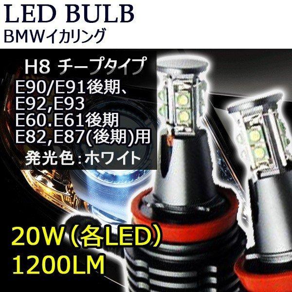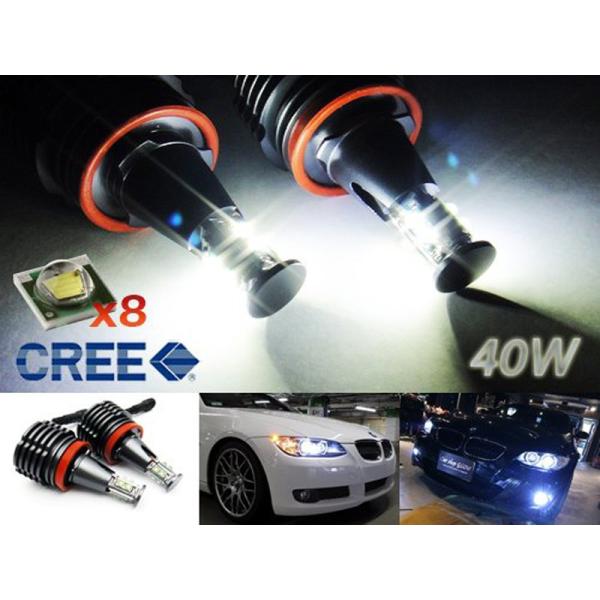LEDバルブ BMW イカリング H8 40W BMW E90/E91後期、E92,E93 E60.E61後期 E82,E87(後期)用 エンジェルリング ホワイト 2本セット 送料無料