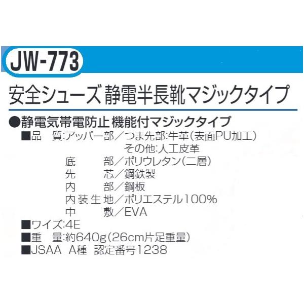 安全靴 安全シューズ静電半長靴マジックタイプ #JW-773 おたふく手袋株式会社