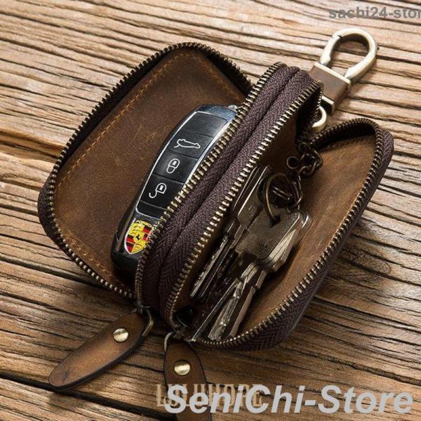 キーケース レザー 革 スマート キーケース 牛革 メンズ 車 ダブルファスナー ポケット 大容量 本革 スマートキーケース
