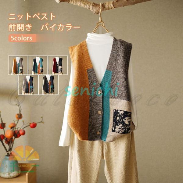 ニットベスト レディース Vネック バイカラー 前ボタン ノースリーブ トップス カジュアル チョッキ ジレー セーター 春秋 コーデ きれいめ おしゃれ