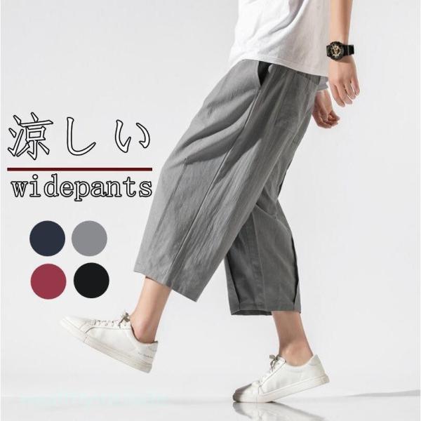 ワイドパンツ 七分丈 メンズ サルエルパンツ 無地 ゆったり 大きいサイズ 春夏 父の日 プレゼント 涼しい