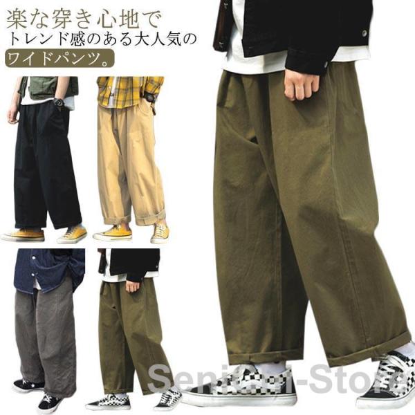 ワイドパンツ メンズ 無地 パンツ ボトムス 春 夏 秋 チノパン メンズ チノパンツ ワイド 長ズボン ロングパンツ 作業着 オーバーサイ