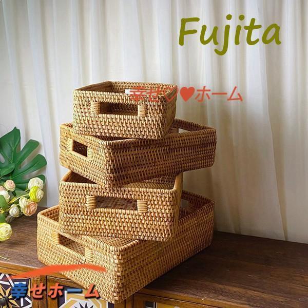 ラタンかご 収納ボックス ラタンバスケット 籐かご スクエア型 手編み ハンドル付き 果物バスケット パン入り お菓子入り 籐のバスケット