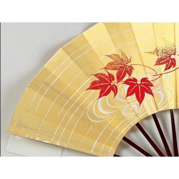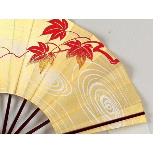 舞扇子 日本舞踊、踊り用 29cm 紅葉、ゴールド箔 タメ塗骨 京扇子 箱付き