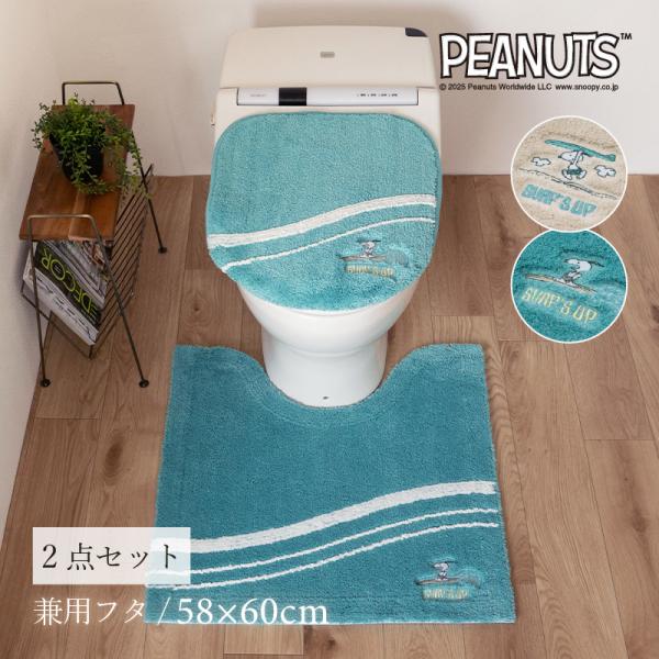 トイレマットセット 2点 約58×60cm トイレマット+兼用フタカバー スヌーピー サーフ センコー